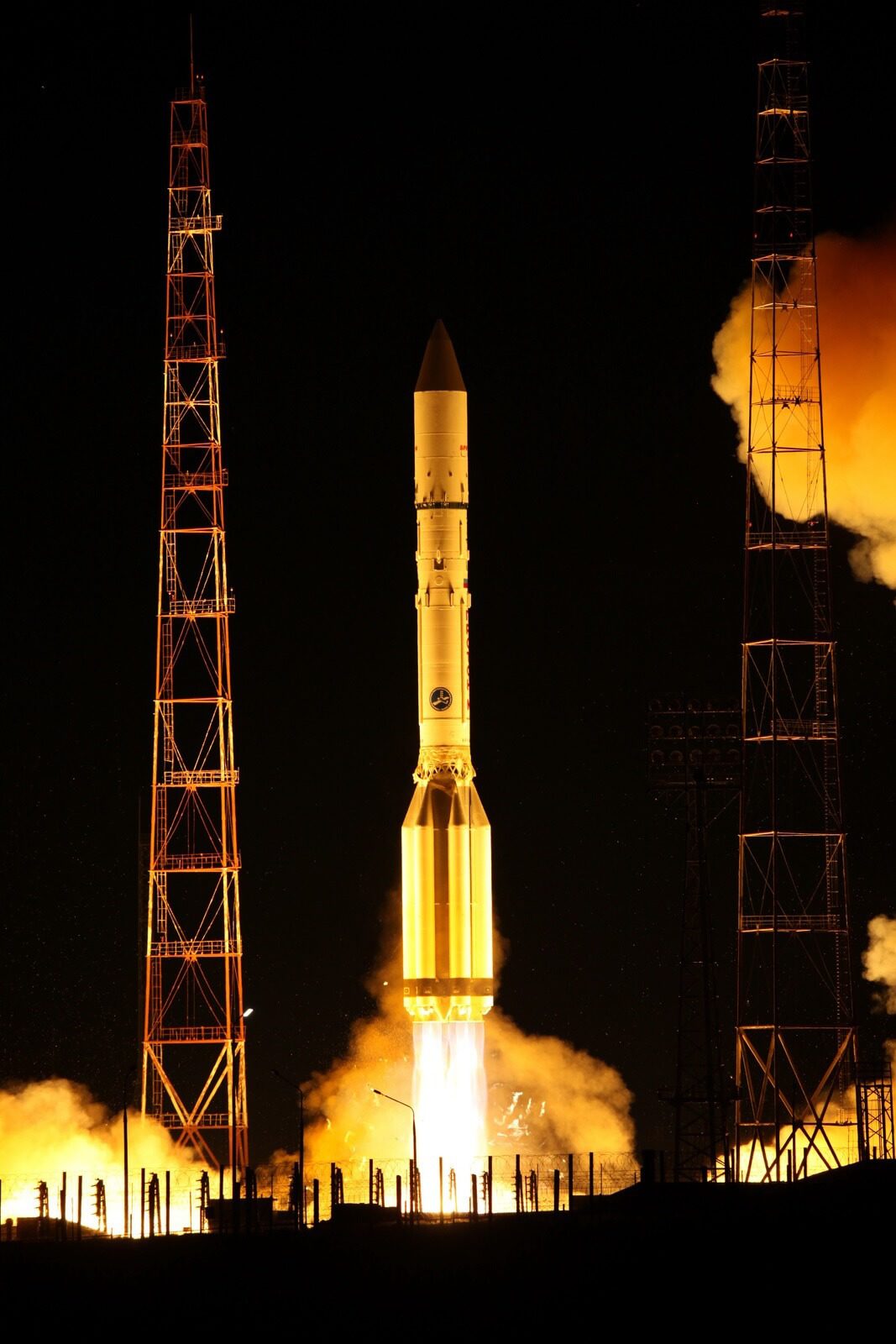 A Proton-M rocket lifts off from Baikonur Cosmodrome carrying BLAGOVEST 1. Courtesy of Roscosmos